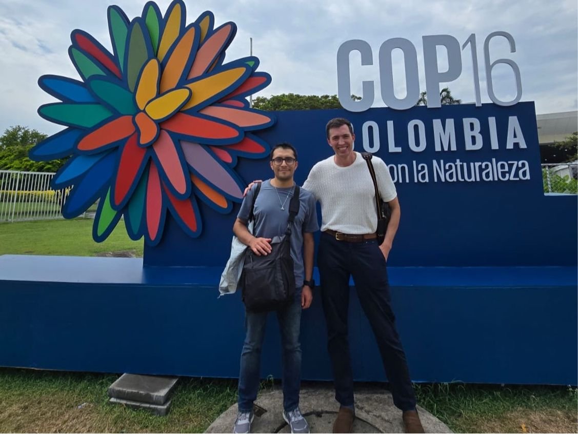 ELC’s Grant Wilson (Executive Director, right) and F. Javier Ruiz (Expert in Environmental Policy and Climate Change) at COP16 in Cali, Colombia.