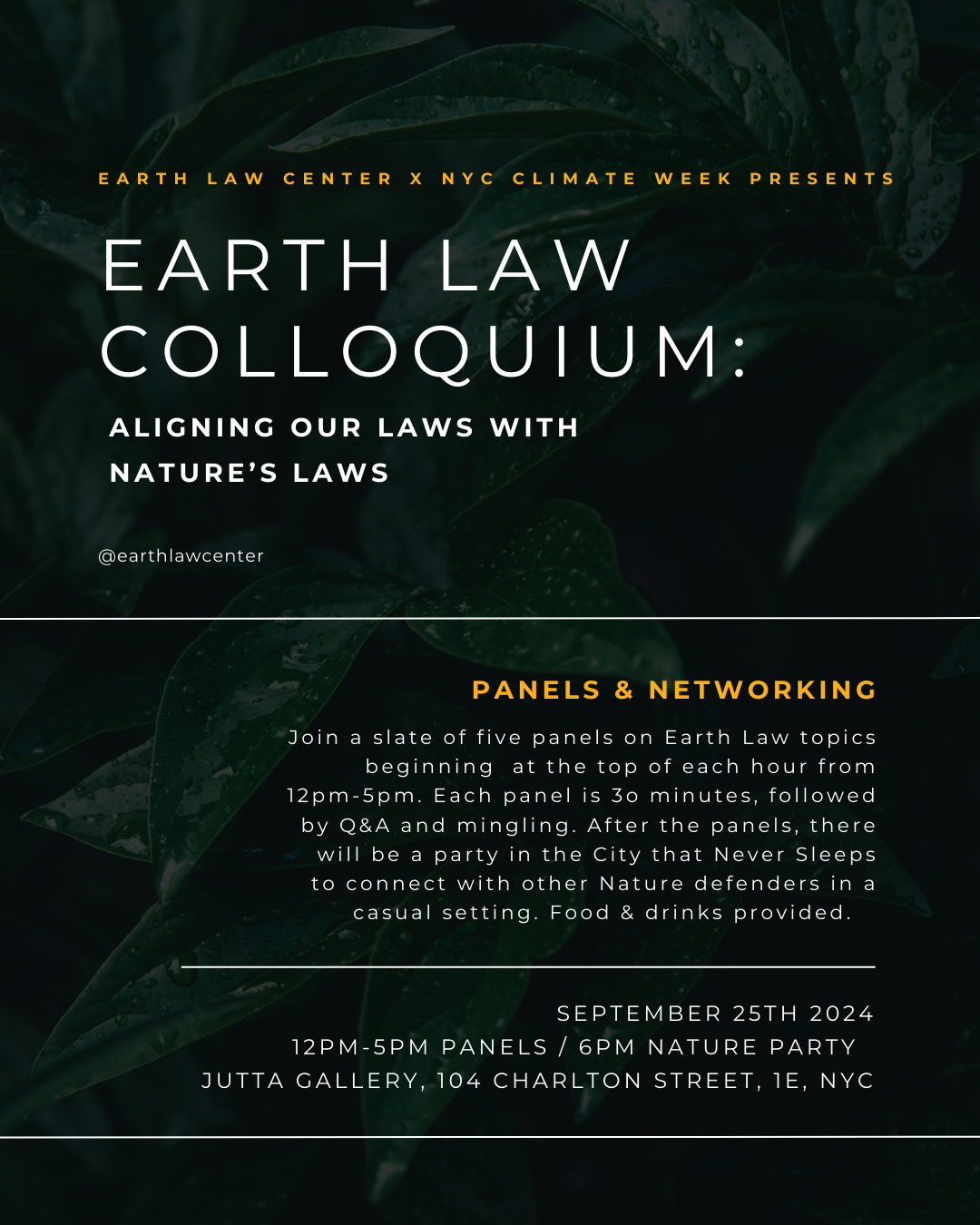 Join us for 1, 2, 3, 4 or all 5 of our expert panels exploring the roots, shoots, and flowers of the growing field of Earth law (also known as ecocentric law). In between the two sets of panels, experience a guided immersion into a world of soundscape and visual art that harmonizes Rights of Nature and climate science education, in a deep ecology installation by Carine Gibert of Grounded in Motion. When the afternoon is over, stay for food, drinks, and networking in an inspiring and collaborative setting with activists and professionals committed to advancing Earth law.